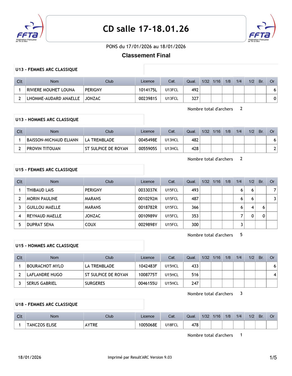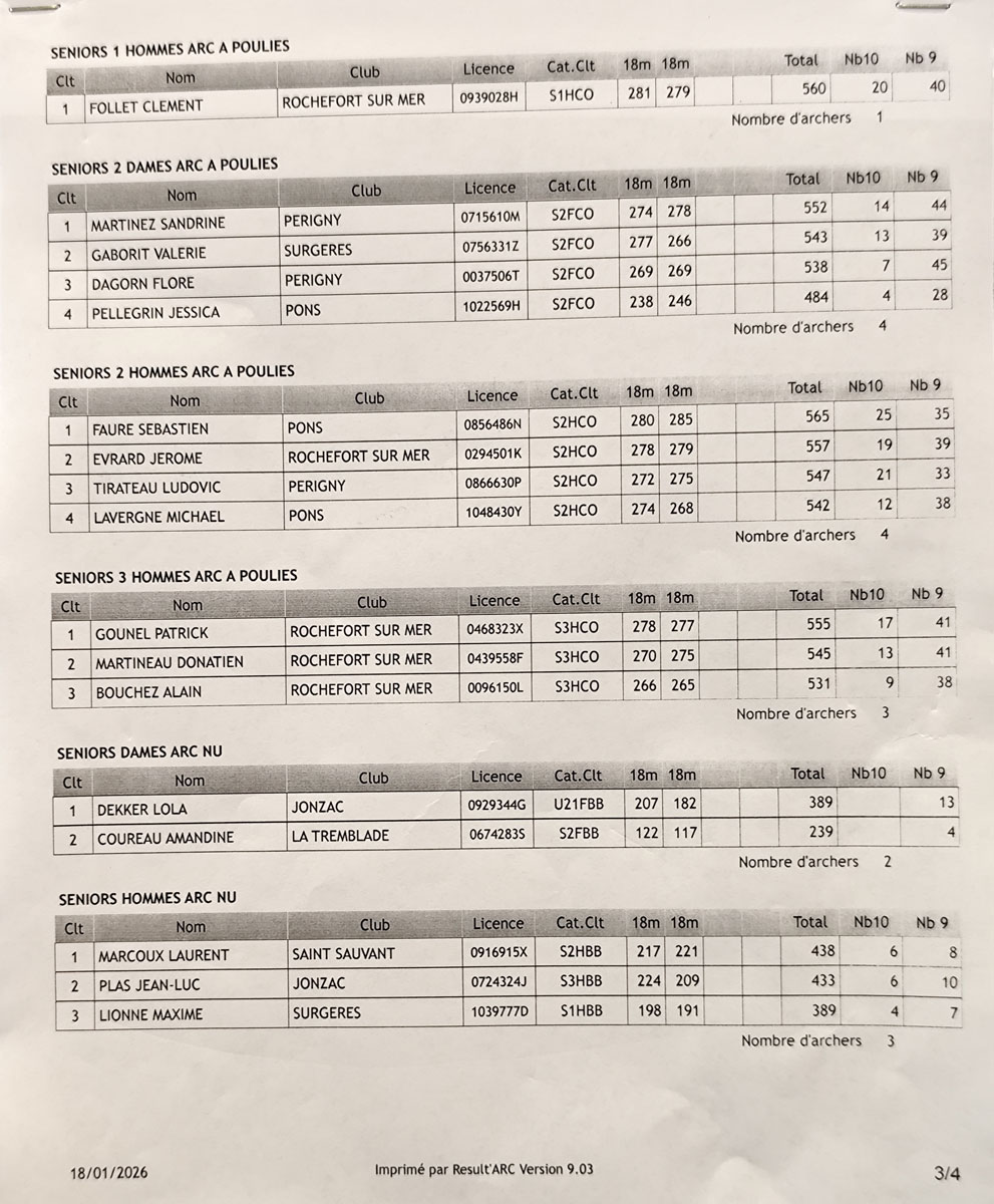 Ce week-end le club des archers Sires de Pons accueillait le championnat départemental de tir à 18m. Le samedi était consacré aux jeunes, et le dimanche aux adultes.