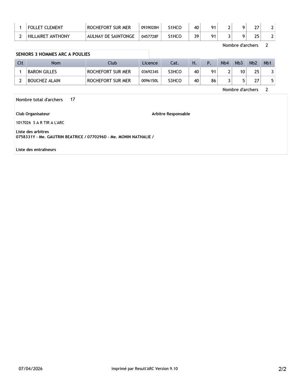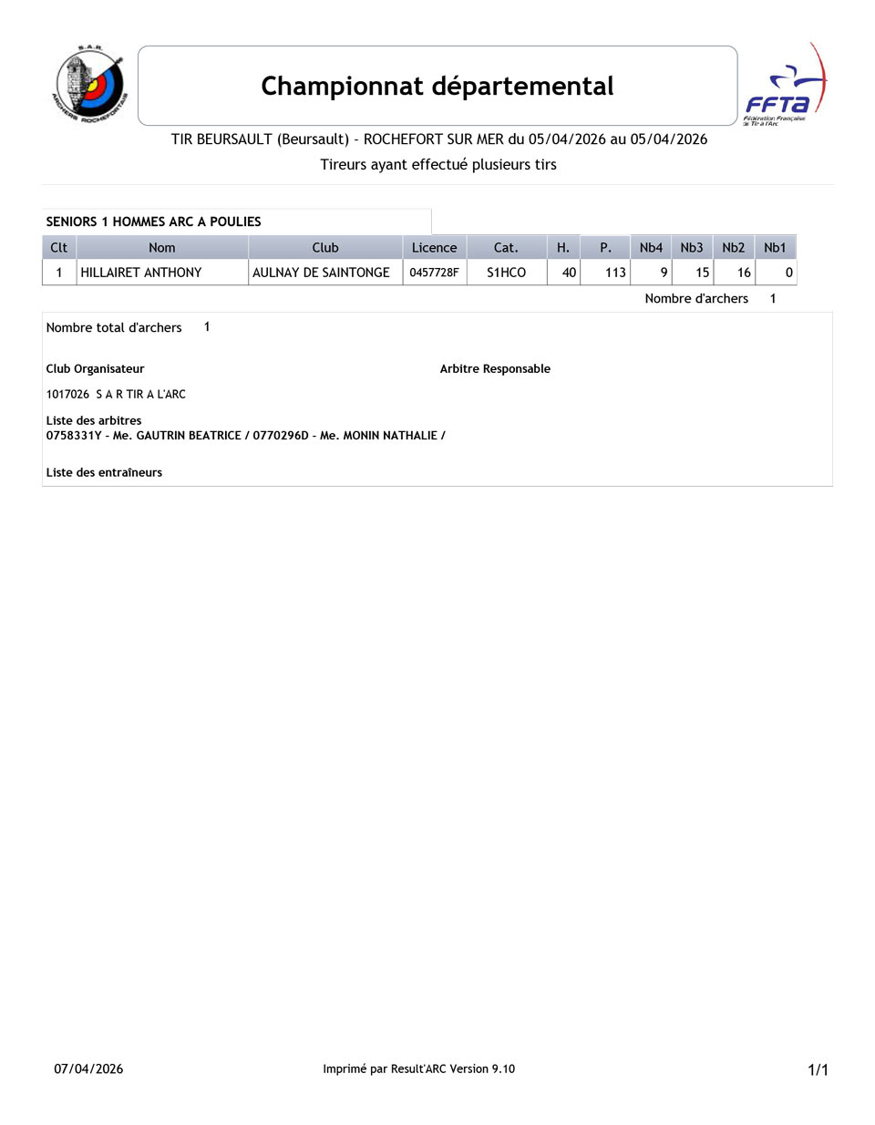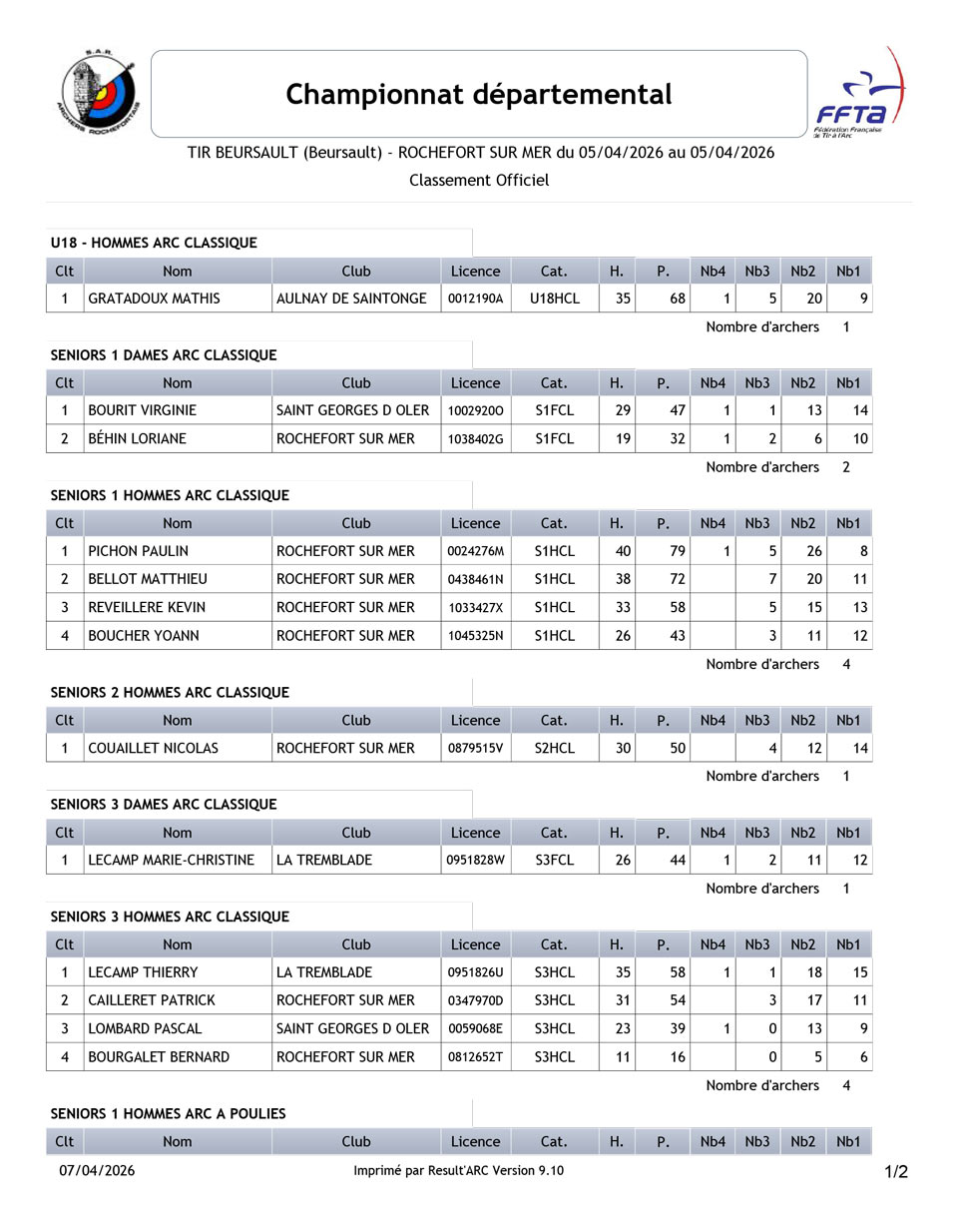 Dimanche 5 avril, la première Compagnie d’archers Rochefortais organisait le championnat départemental Beursault 2026. Petite participation avec seulement 23 archers présents sur les trois départs que la compagnie proposait.